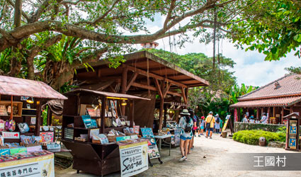沖繩文化王國是體驗琉球文化最好的主題公園。在重現琉球王朝時代風貌的琉球王國城下町之後,可以接觸到像琉球玻璃及陶器藝術、民間傳統手工機織、花色印染法這樣的沖繩傳統工藝。王國村