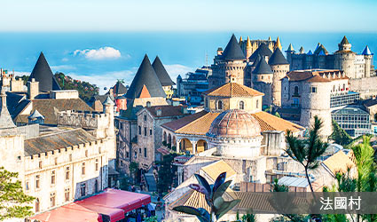 巴拿山 Sun World Ba Na Hills 十大名點: 巴拿山纜車 Ba Na Cable Car、愛情花園 Le Jardin d’Amour、佛手金橋 Golden Bridge、法國百年酒窖 Debay(本行程不含門票和品酒費用)、大佛 & 靈應寺、靜心園小火車、法國村 French Village、夢幻公園 Fantasy Park 一票到底。